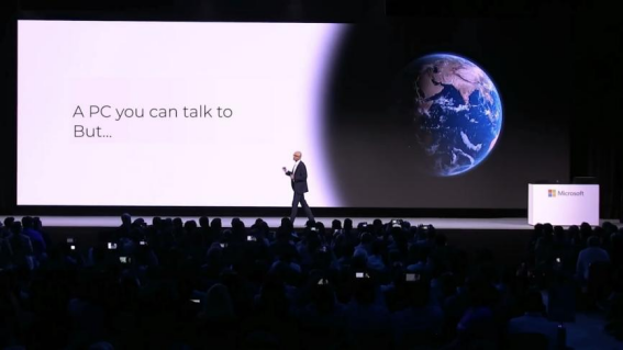 圖注:納德拉在三年前就反復(fù)說:“AI讓你的個人電腦會跟你說話。”