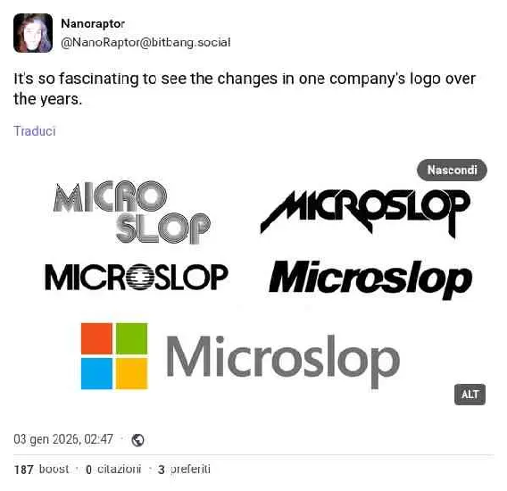 這徹底得罪了微軟用戶。他們開始惡搞和諷刺納德拉,給“微軟”(Microsoft)起了個綽號“微泔”(Microslop)。