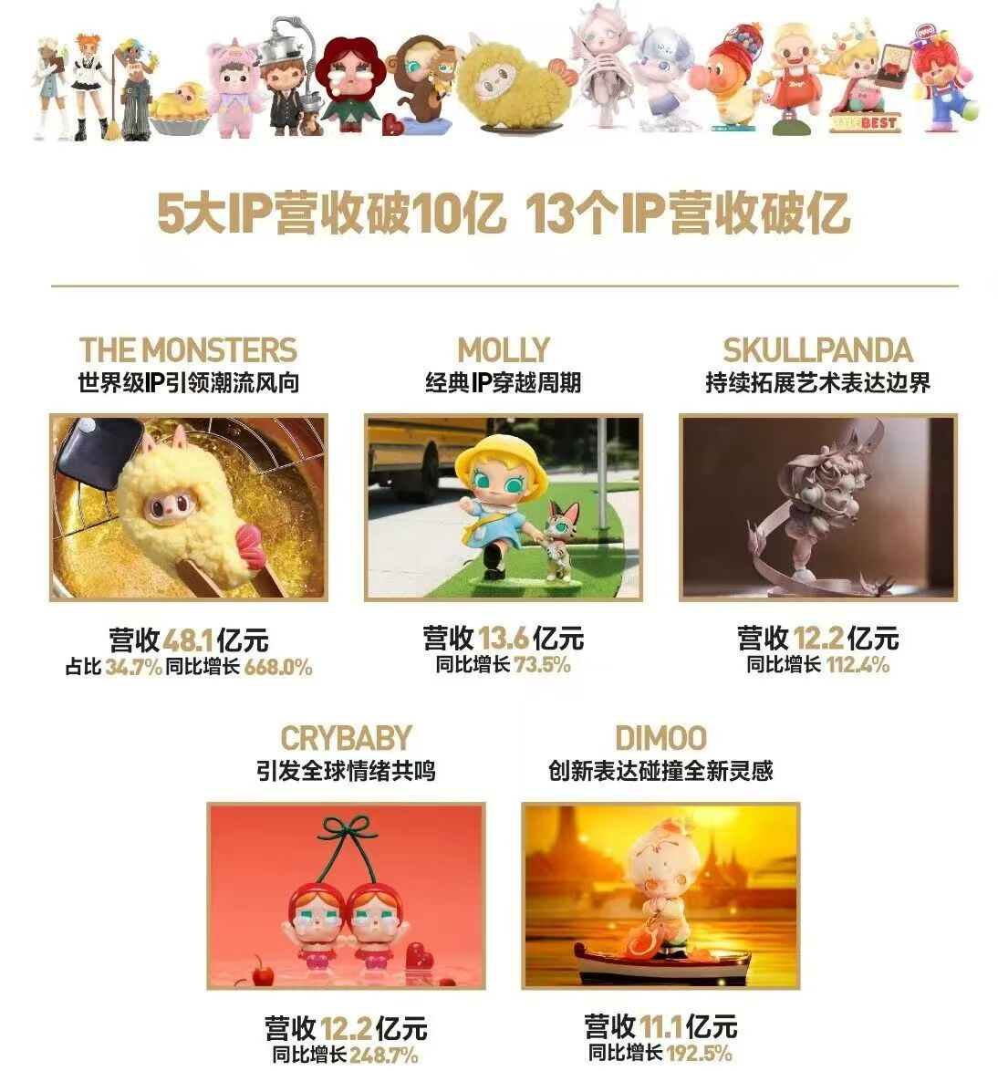 2025年上半年,泡泡瑪特共有13個(gè)IP收入過(guò)億,其中THE MONSTERS以48.1億元收入成為新晉頂流,“星星人”加入僅一年便實(shí)現(xiàn)3.9億元營(yíng)收。泡泡瑪特進(jìn)入了一種“頭部穩(wěn)增長(zhǎng)、腰部接熱度”的接力賽,踐行了王寧的那句“孵化新IP的速度,我們比迪士尼快。”![]()
