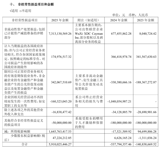 需注意的是,非經(jīng)常性損益對(duì)凈利潤(rùn)的拉動(dòng)作用顯著。2025年藥明康德非經(jīng)常性損益達(dá)59.1億元,主要來(lái)自出售聯(lián)營(yíng)企業(yè)股權(quán)、剝離部分業(yè)務(wù)及金融資產(chǎn)公允價(jià)值變動(dòng)收益。