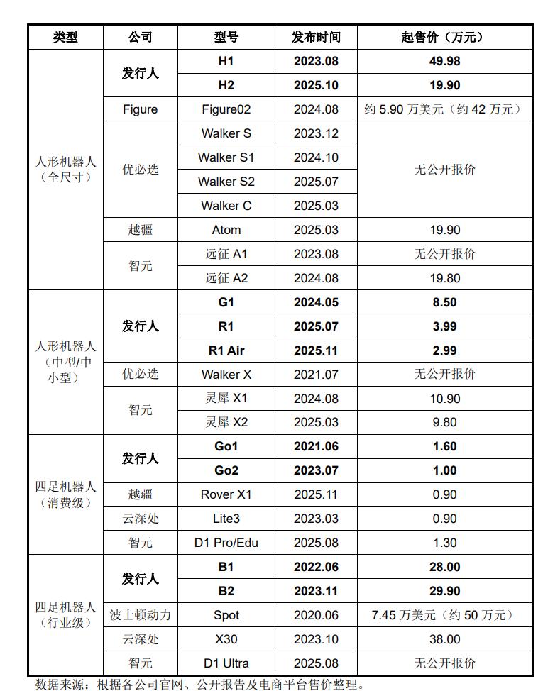 或許,從2025年開始的機器人行業(yè)價格戰(zhàn),“打”得還是太早了。因為宇樹的產品能賣出去,從來都不是靠便宜。在問詢回復函里,宇樹列出了自己產品與友商的價格對比。除了中小型機器人R1系列外,宇樹的產品定價沒有明顯便宜。說到底,現(xiàn)階段機器人銷售拼的還是綜合產品能力。