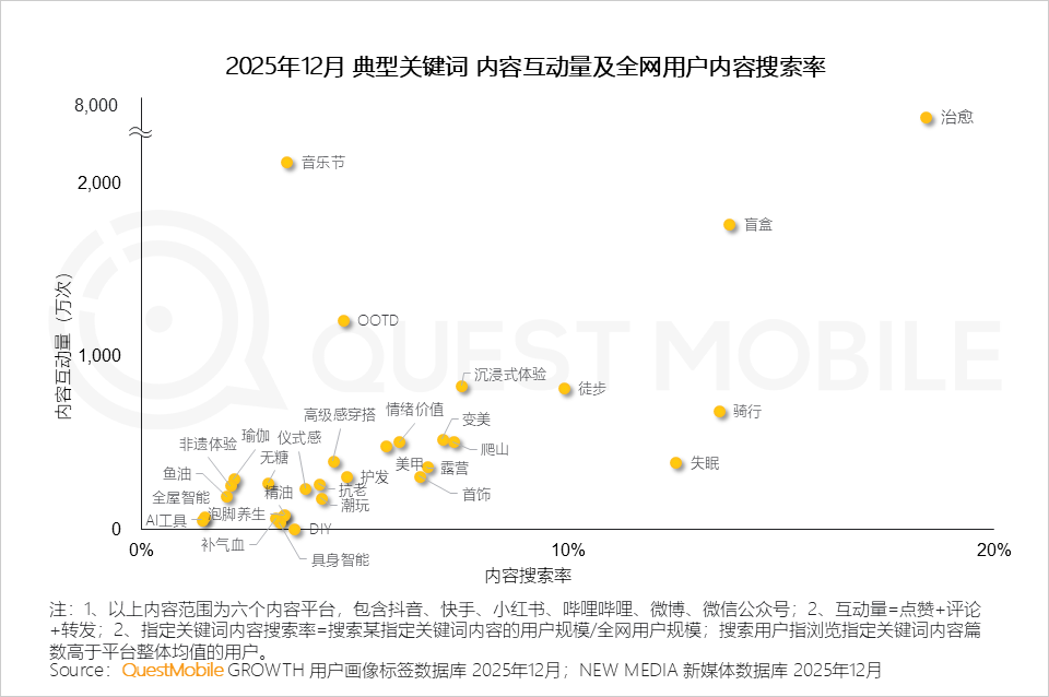 用戶的興趣點(diǎn)正明顯向情緒撫慰、體驗(yàn)感、外在形象、身心管理等主題聚焦。