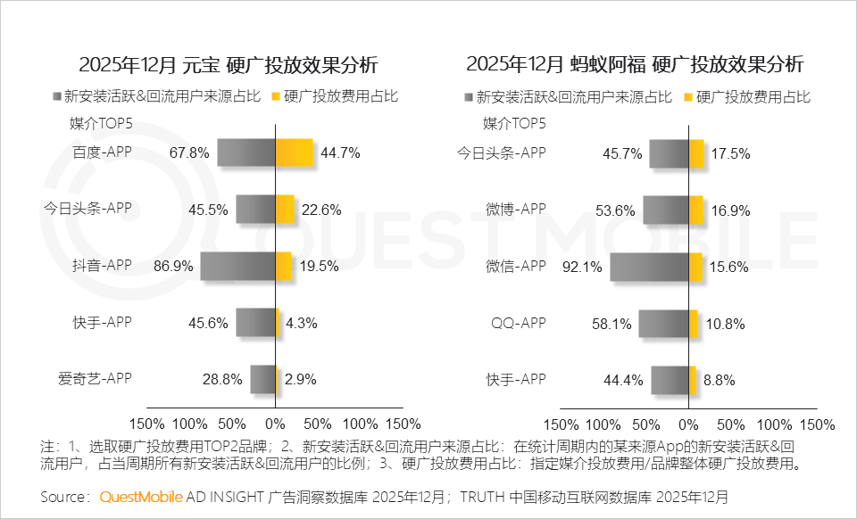 品牌媒介策略存在顯著差異,元寶媒介投放集中度較高,螞蟻阿福較為均衡。