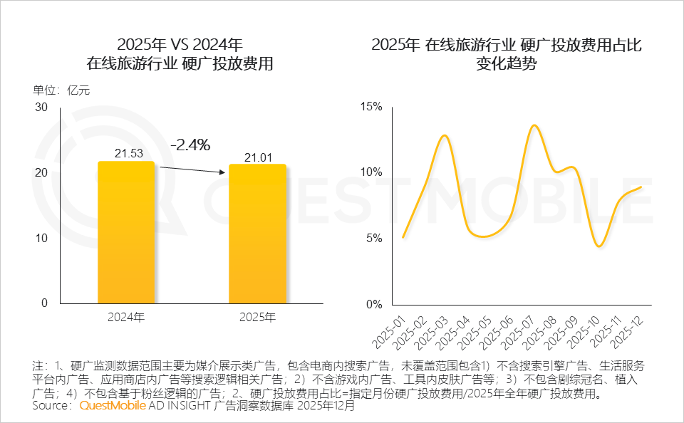 1.1 在線旅游行業(yè)硬廣投放規(guī)模維穩(wěn),競(jìng)爭(zhēng)從預(yù)算規(guī)模競(jìng)爭(zhēng)升級(jí)為“投放時(shí)機(jī)博弈”