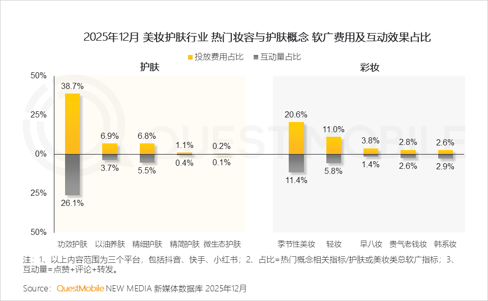1.2 美妝行業(yè)護(hù)膚營(yíng)銷概念以功效、精簡(jiǎn)為主,而彩妝的營(yíng)銷社交屬性更強(qiáng)
