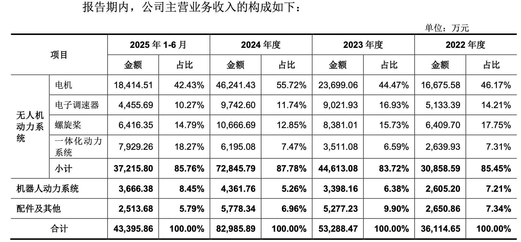 分業(yè)務(wù)來看,無人機(jī)電動(dòng)動(dòng)力系統(tǒng)營收從2022年的3.09億元增長至2024年的7.28億元,年復(fù)合增長率高達(dá)53.64%;機(jī)器人動(dòng)力系統(tǒng)業(yè)務(wù)則從無到有、快速放量,成為公司新的業(yè)績增長極。