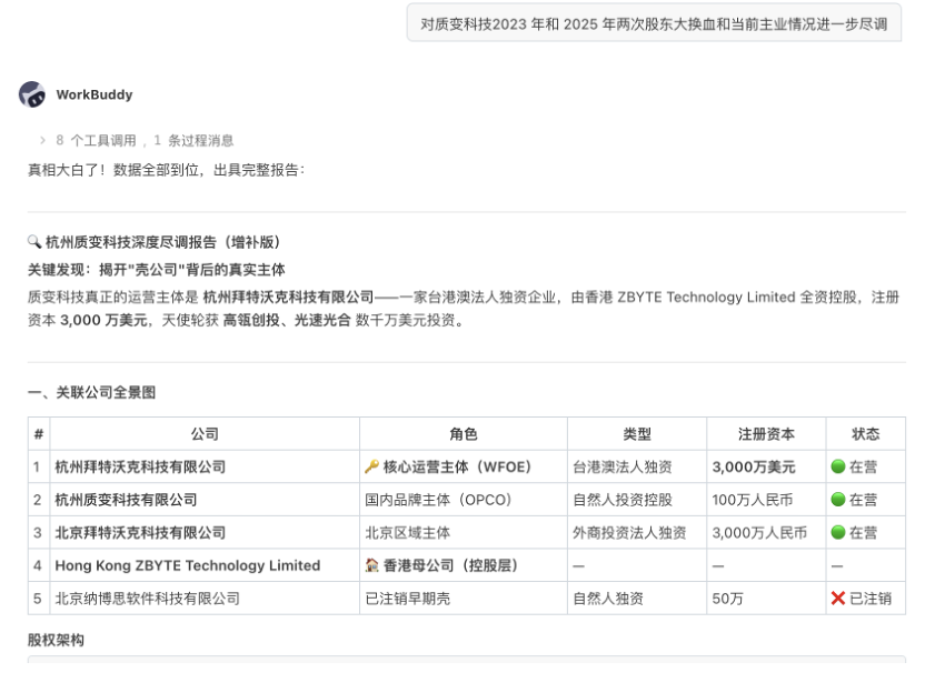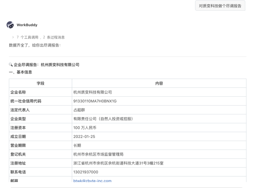 這就是我一個代碼零基礎(chǔ)的用戶幾句簡單對話后得出的有效信息,而且這不是LLM通過網(wǎng)上公開信息拼湊而成的,而是基于真實的工商信息。