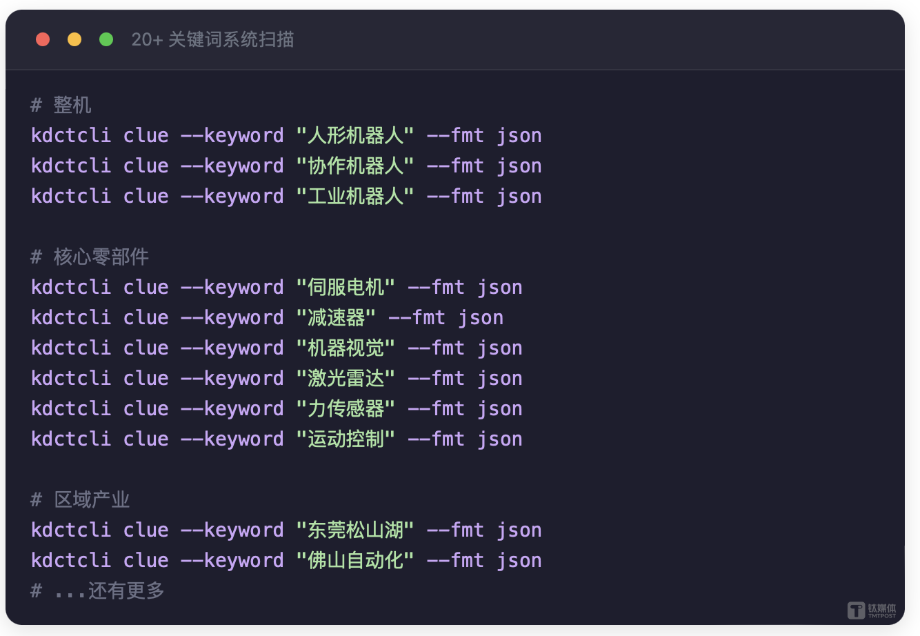 于是,我輸入了“進一步搜索具身智能產(chǎn)業(yè)相關(guān)企業(yè)”這一句話,AI就自動幫我跑了二十多個關(guān)鍵詞,橫跨人形機器人、工業(yè)/服務(wù)機器人、機器視覺、自動化設(shè)備、產(chǎn)業(yè)基金等環(huán)節(jié),快速給出了一份全產(chǎn)業(yè)鏈的企業(yè)線索報告,每個細分類別都包含多家企業(yè)的詳細信息,還生成了產(chǎn)業(yè)鏈全景圖和高價值線索TOP5推薦……
