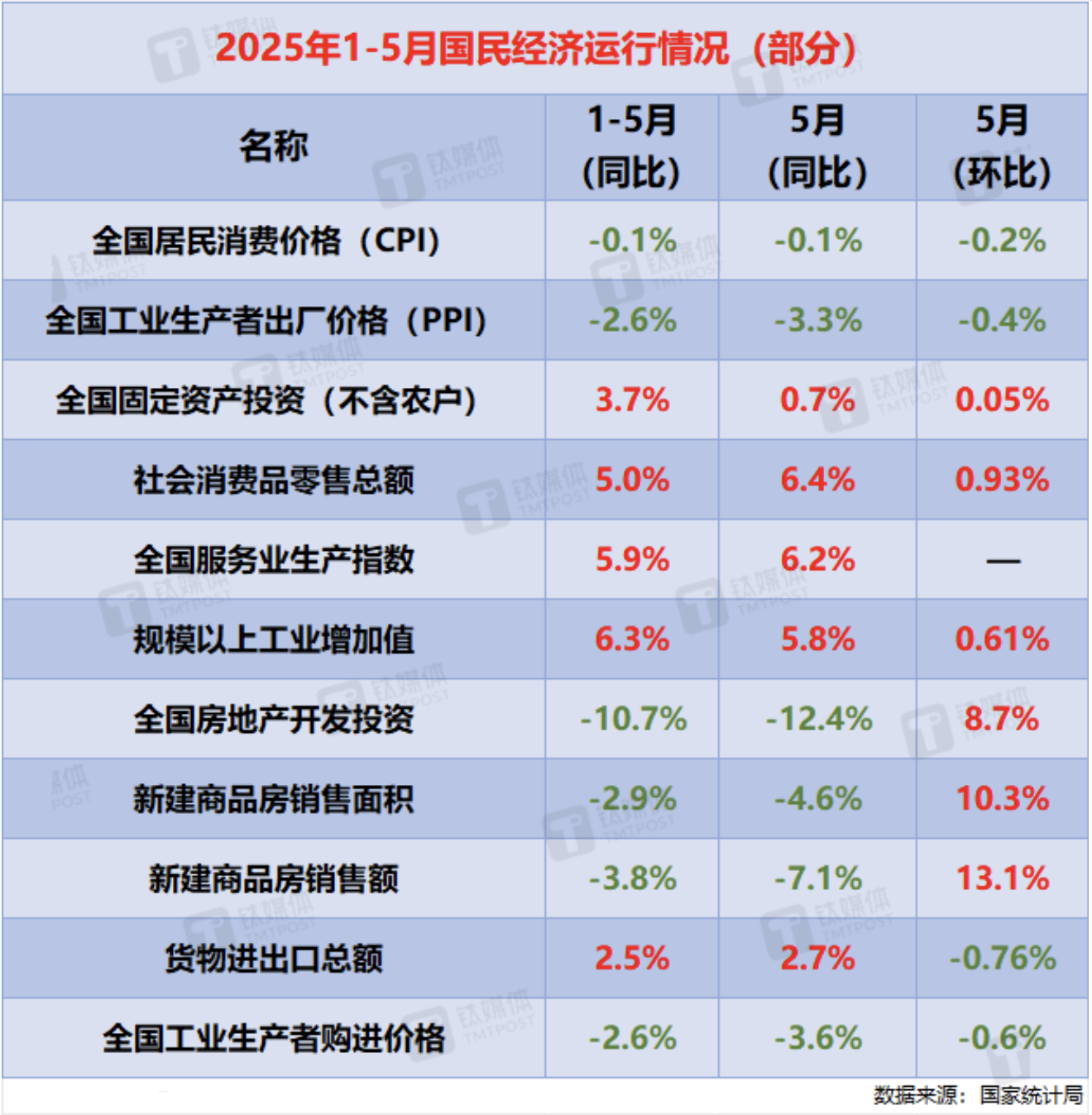 【鈦媒體綜合】據(jù)新華社,6月16日國(guó)家統(tǒng)計(jì)局發(fā)布的數(shù)據(jù)顯示,今年5月份,國(guó)民經(jīng)濟(jì)頂住壓力平穩(wěn)運(yùn)行,生產(chǎn)需求穩(wěn)定增長(zhǎng),就業(yè)形勢(shì)總體穩(wěn)定,新動(dòng)能成長(zhǎng)壯大,高質(zhì)量發(fā)展向優(yōu)向新。
